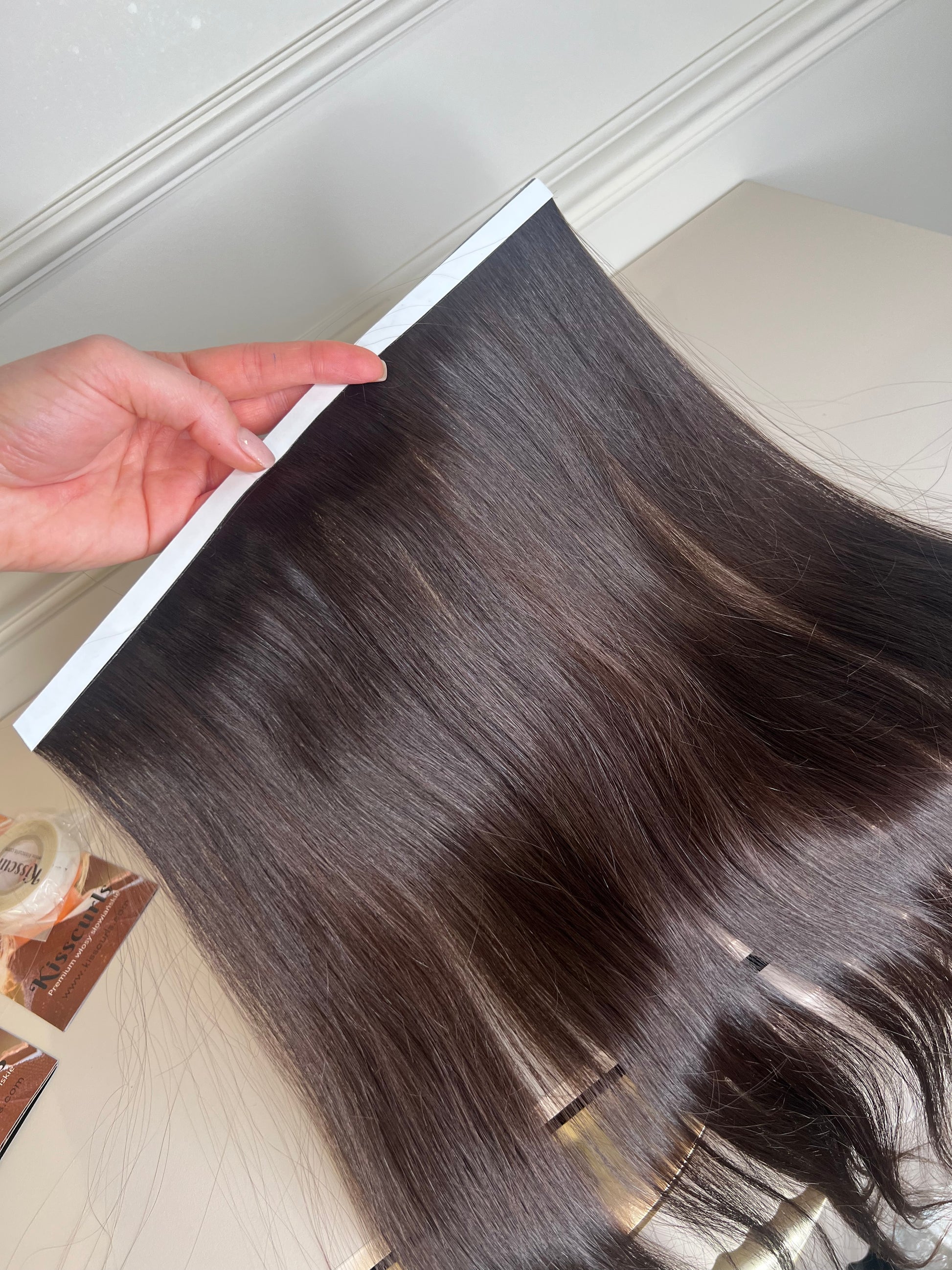 Easy to self-install, invisible Long Tape Weft Extensions designed for everyday wearing.