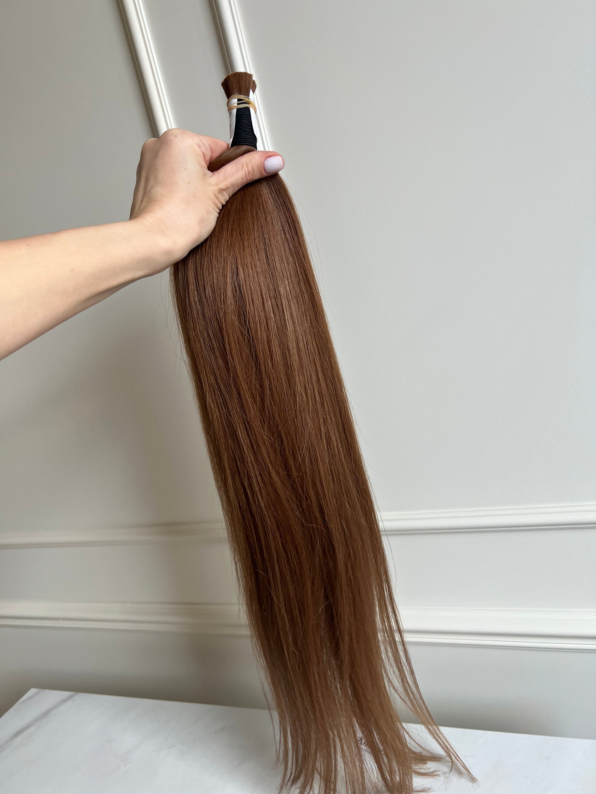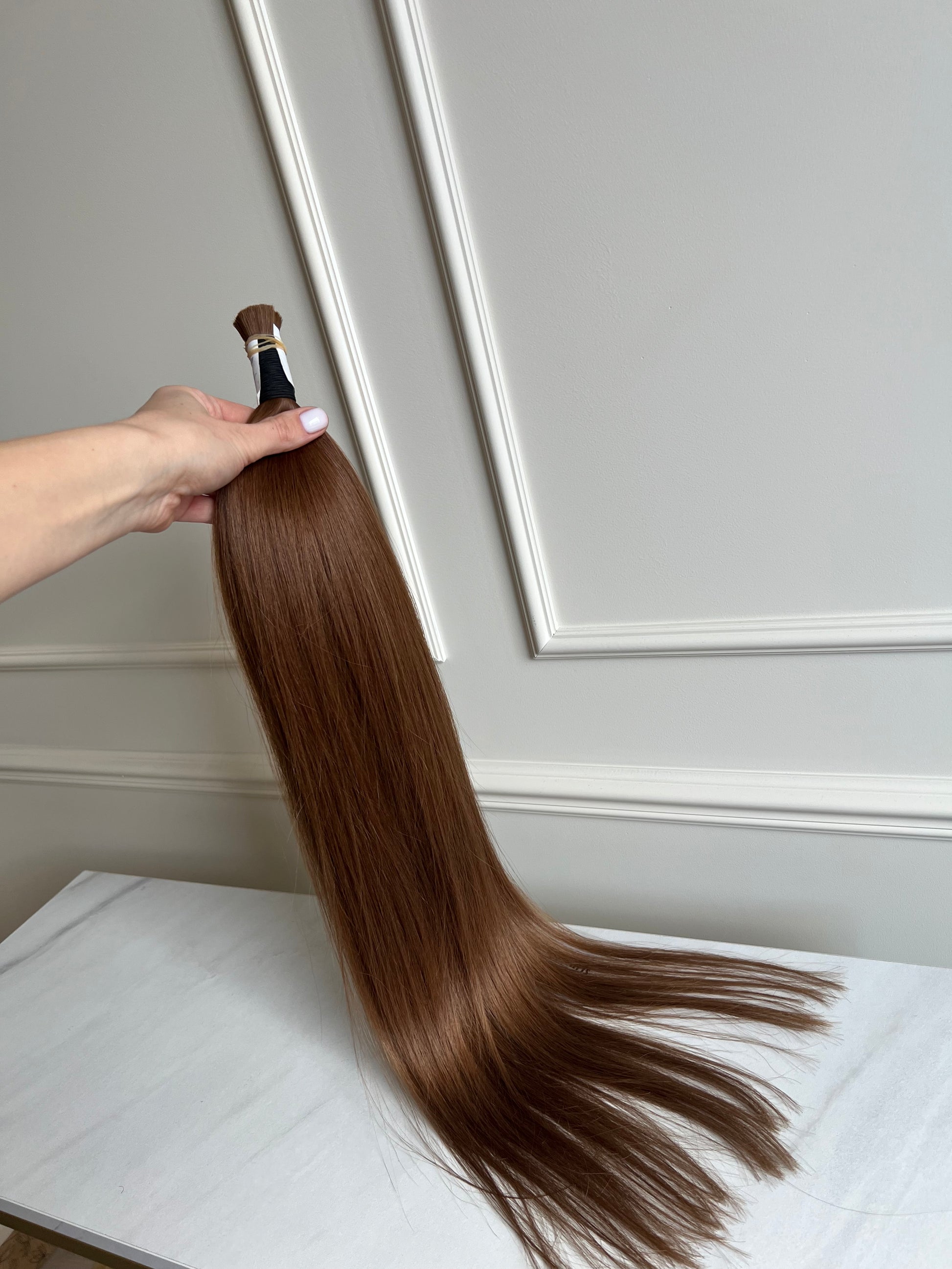 We can create a custom long tape weft set just for you! To order a set, add it to your cart along with the "Create Long Tape Weft Extensions" service. Then, specify weight in grams. This way, you'll receive a ready-to-use bio long tape weft set made from your selected bundle.