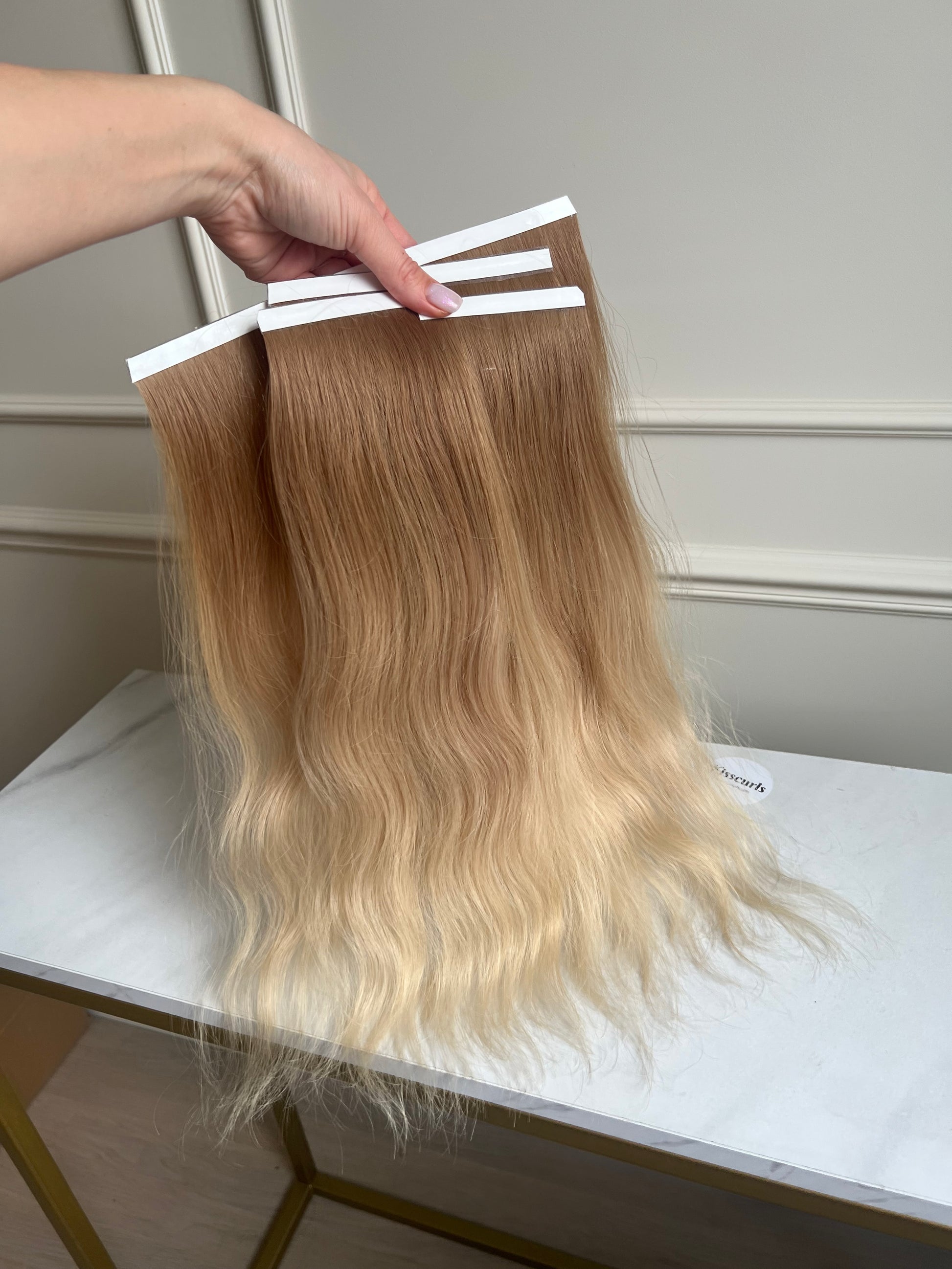 Bio taśmy włosy doczepiane Blond ombre falowane 92g 43cm