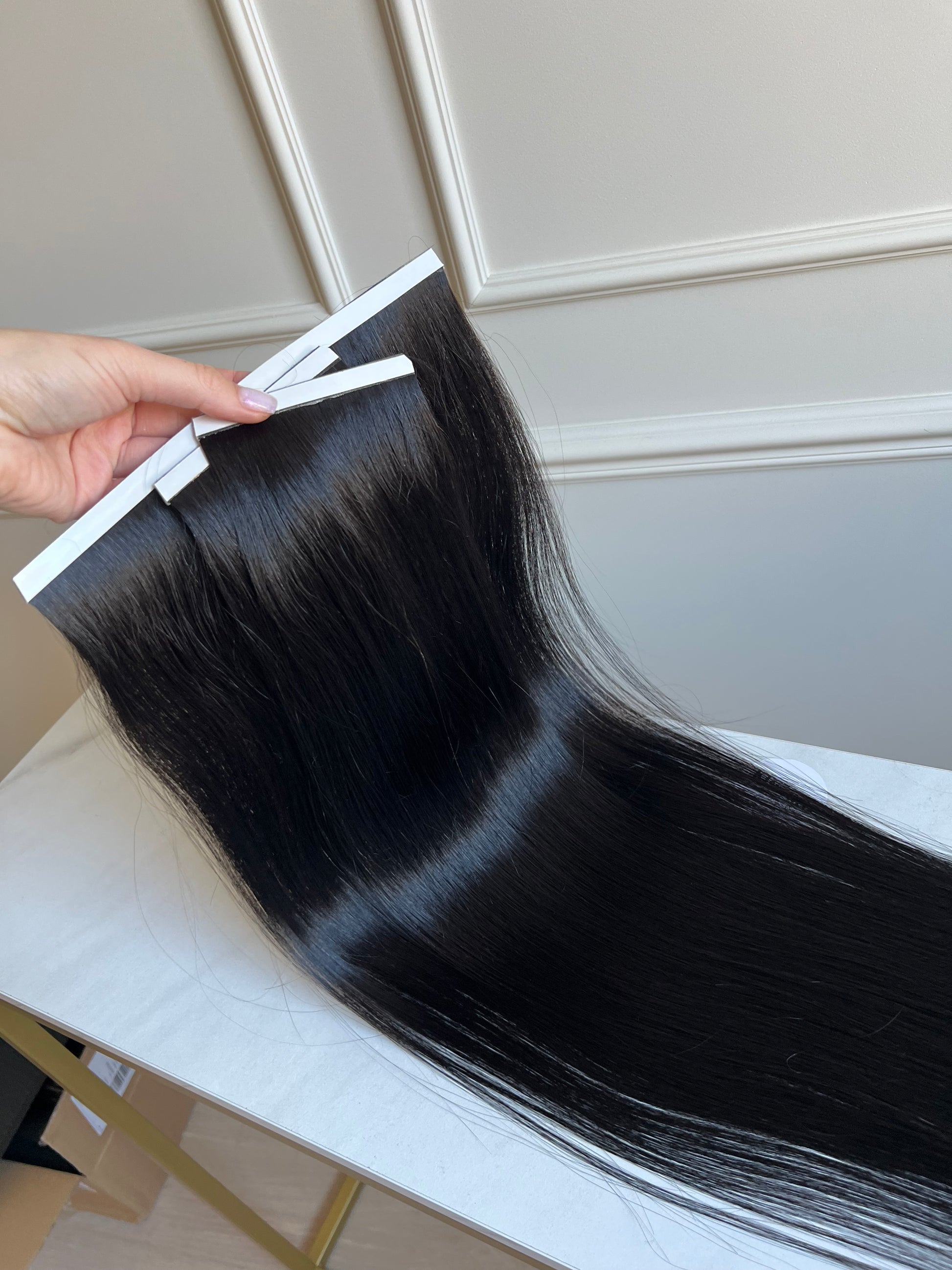 Łatwe do samodzielnego założenia, niewidoczne taśmy do włosów przeznaczone do codziennego noszenia.
