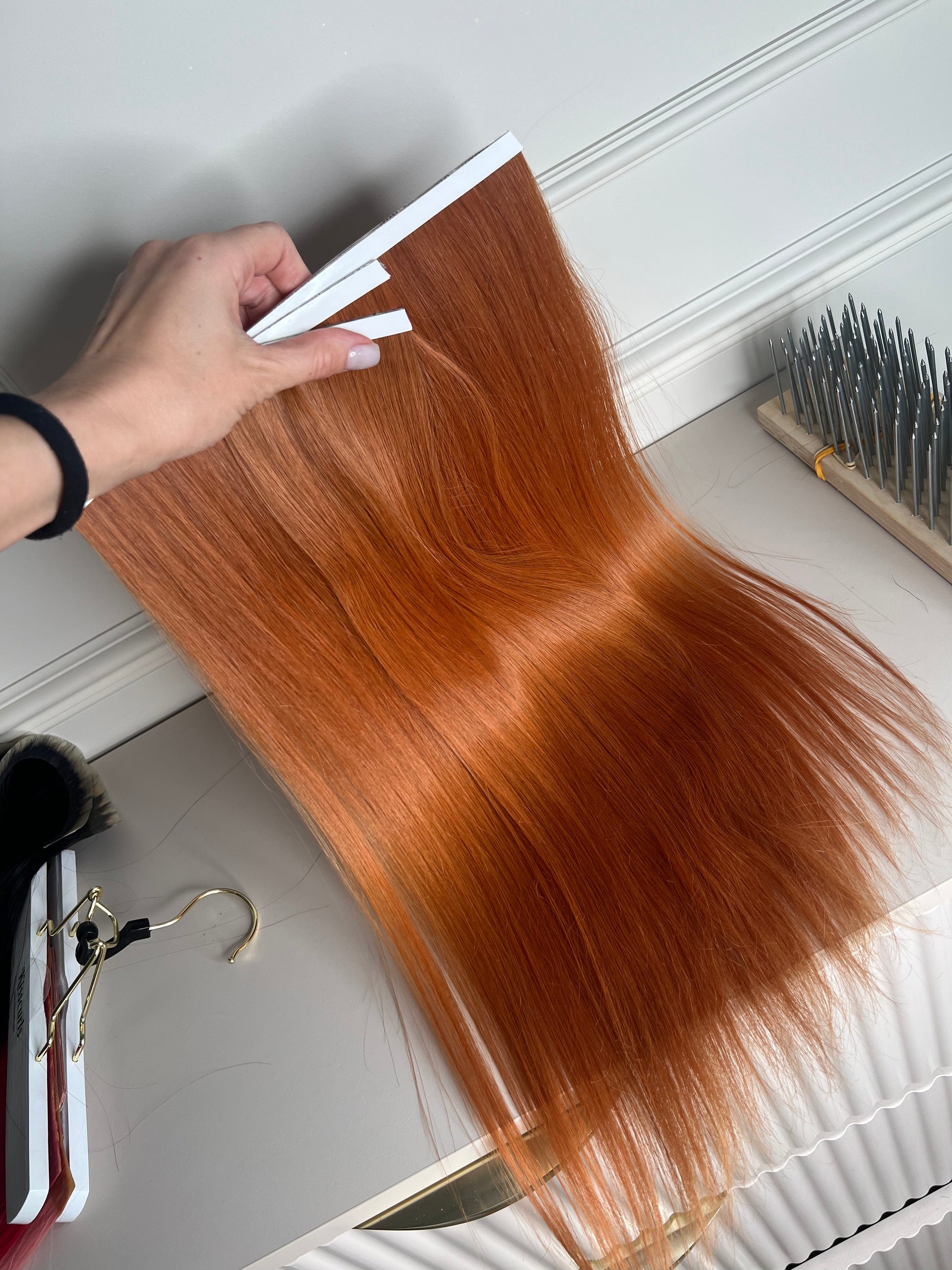 Włosy naturalne słowiańskie biotaśmy 50cm 90g 3 szt Ginger hair