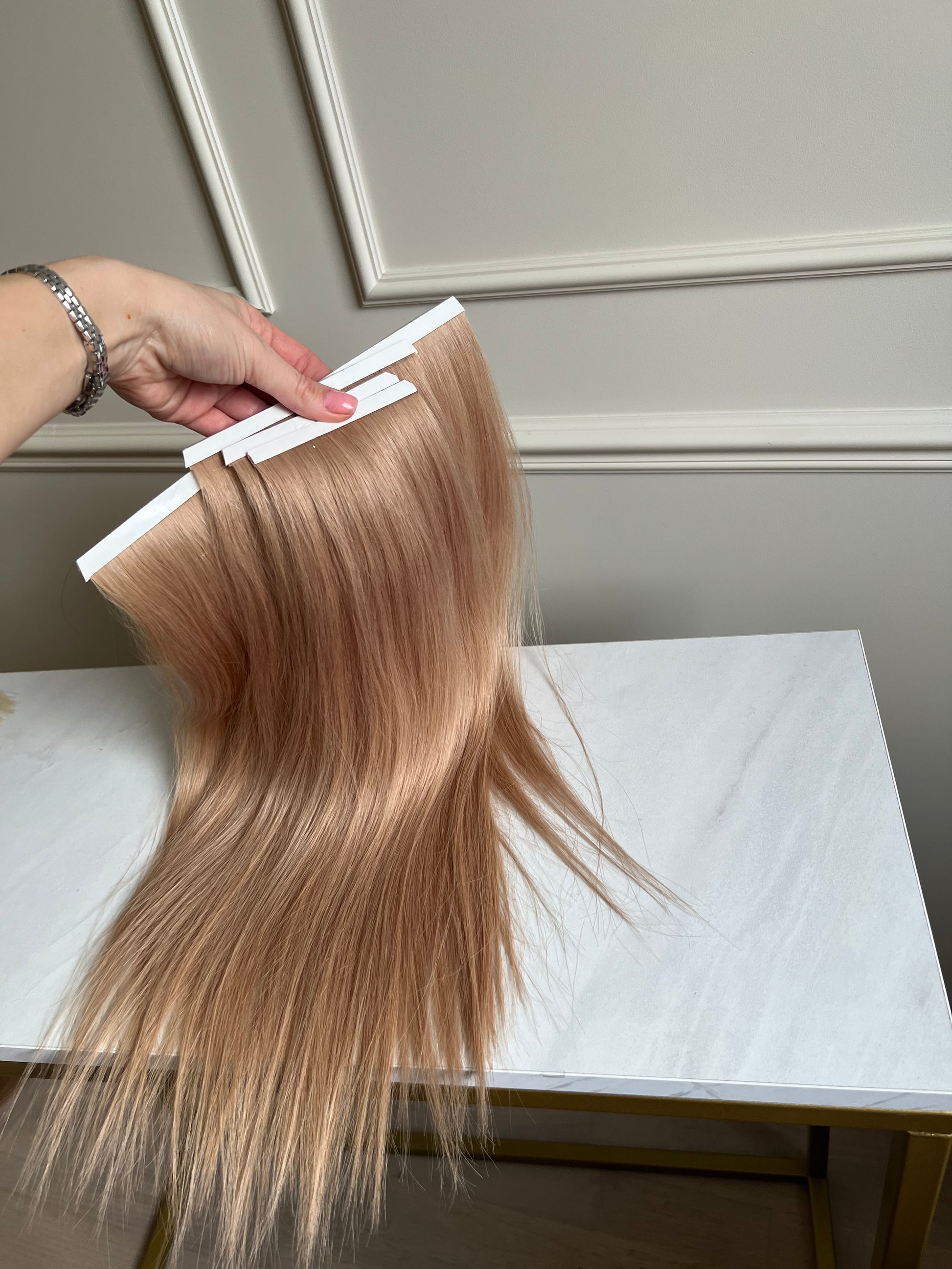 Zestaw włosów na taśmach wielokrotnego użytku - elastyczne BIOTAŚMY wykonane z 100% naturalnych słowiańskich włosów najwyższej jakości. Możesz łatwo założyć je samodzielnie w domu w zaledwie 20 minut lub skorzystać z usług najbliższego salonu fryzjerskiego. Nie musisz ich zdejmować przez maksymalnie 1,5 miesiąca.