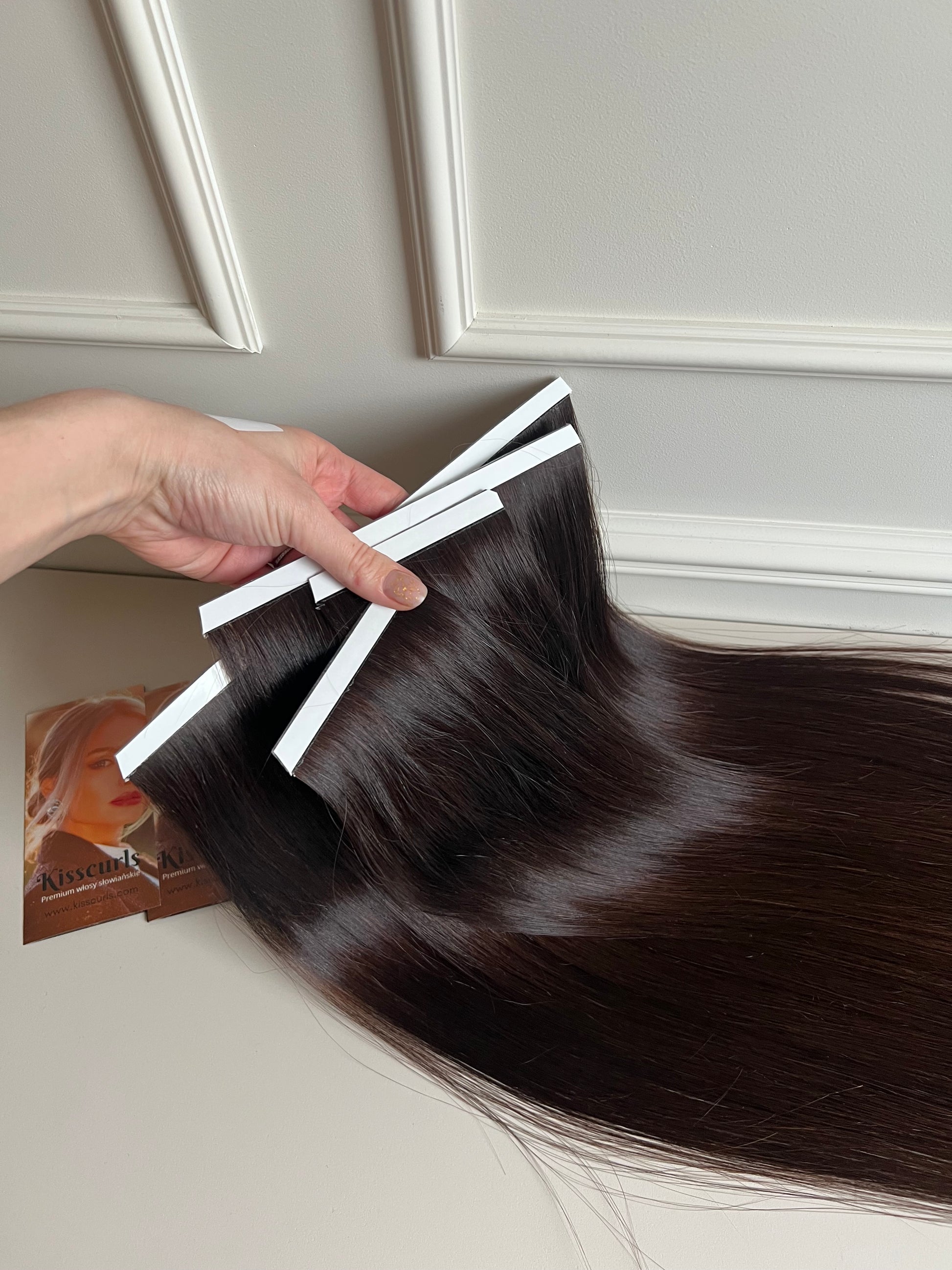 Łatwe do samodzielnego założenia, niewidoczne taśmy do włosów przeznaczone do codziennego noszenia.