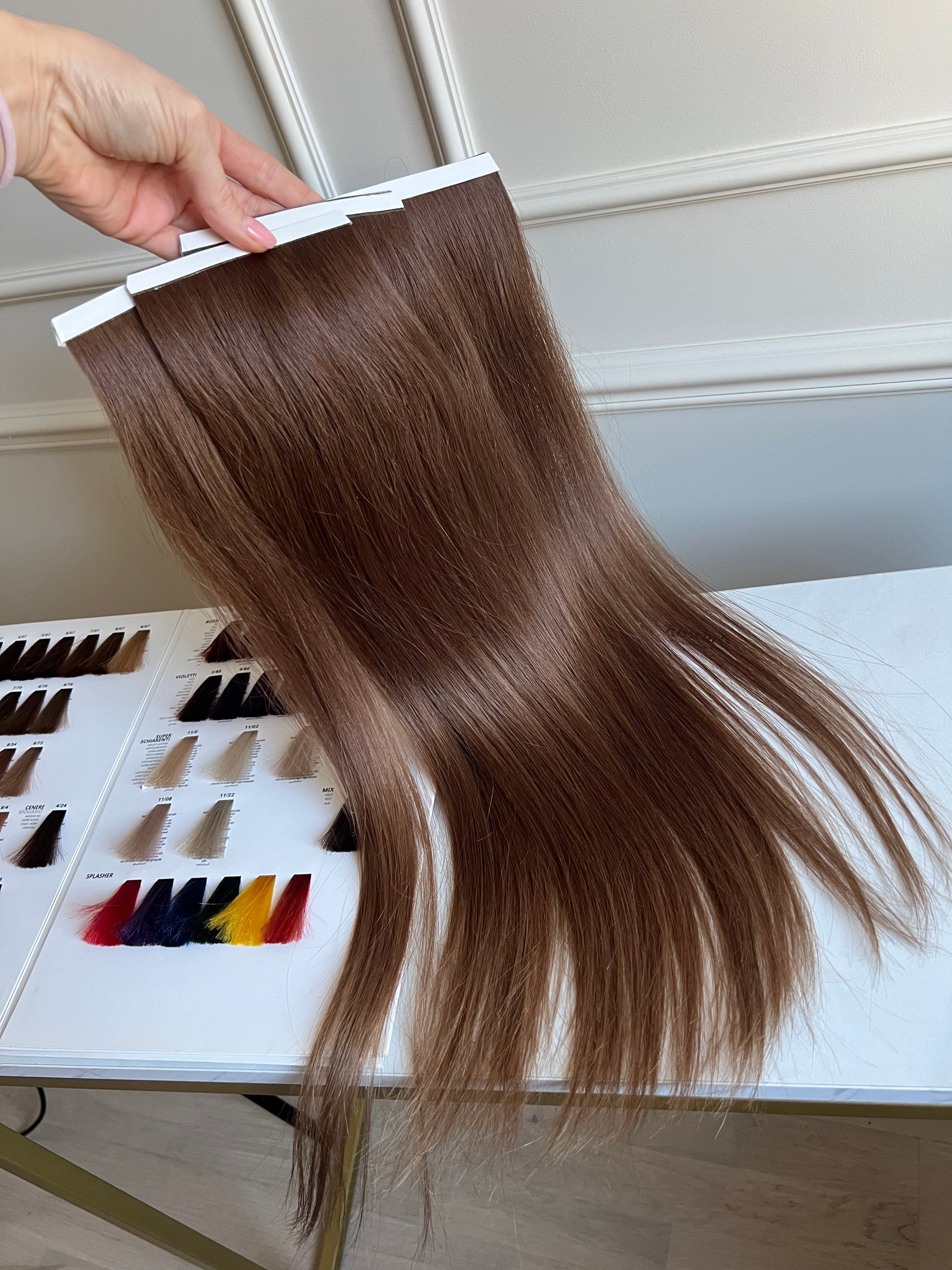 Łatwe do samodzielnego założenia, niewidoczne taśmy do włosów przeznaczone do codziennego noszenia.