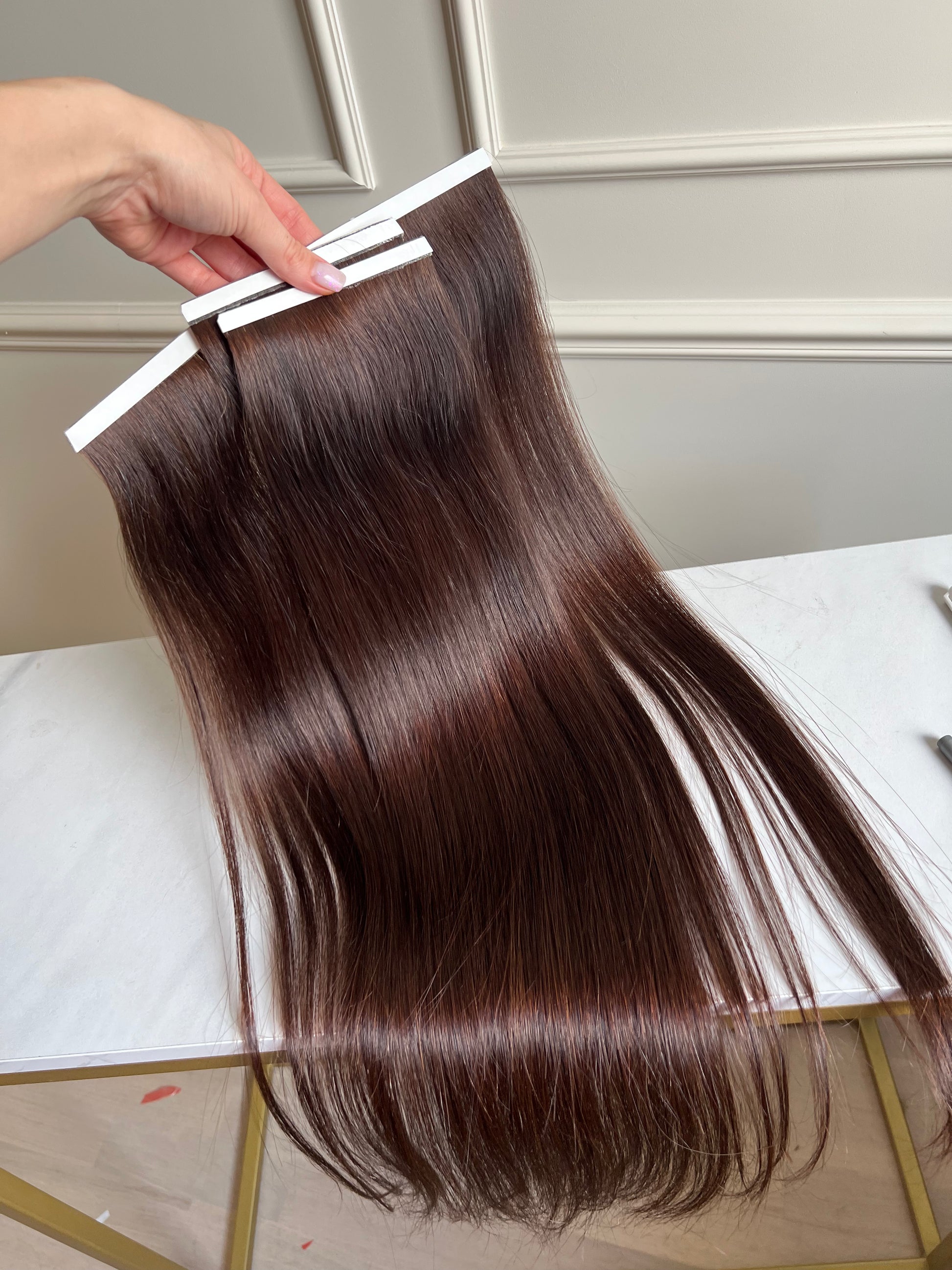 Zestaw zawiera wszystko, czego potrzebujesz do bezpiecznego i efektownego przedłużania włosów metodą taśmową. Gotowe do aplikacji doczepiane włosy słowiańskie na taśmach – wyjątkowo miękkie, naturalne i trwałe.
