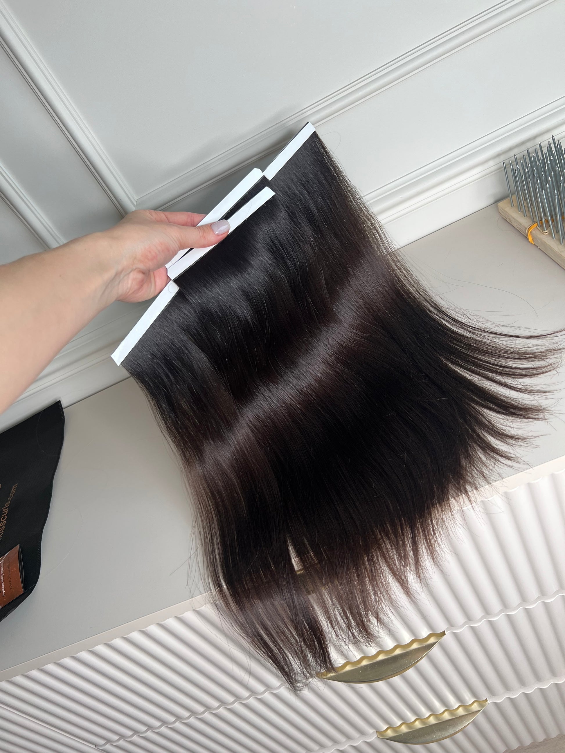 Łatwe do samodzielnego założenia, niewidoczne taśmy do włosów przeznaczone do codziennego noszenia.