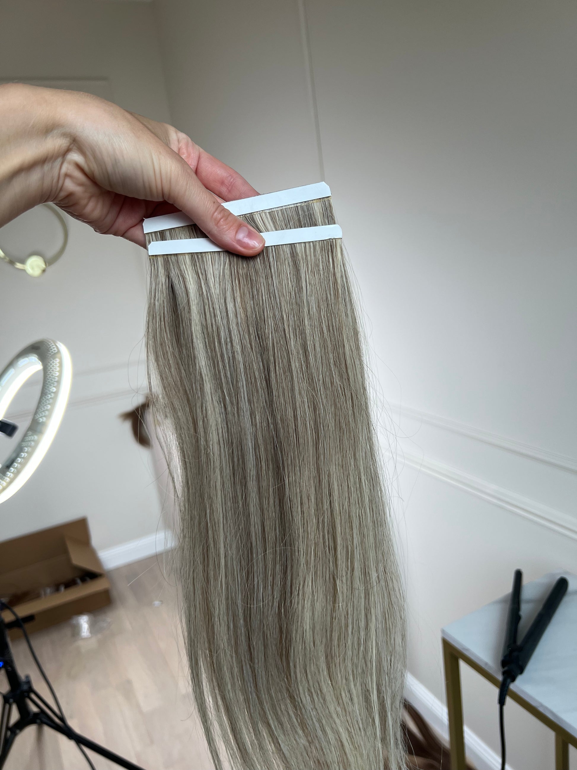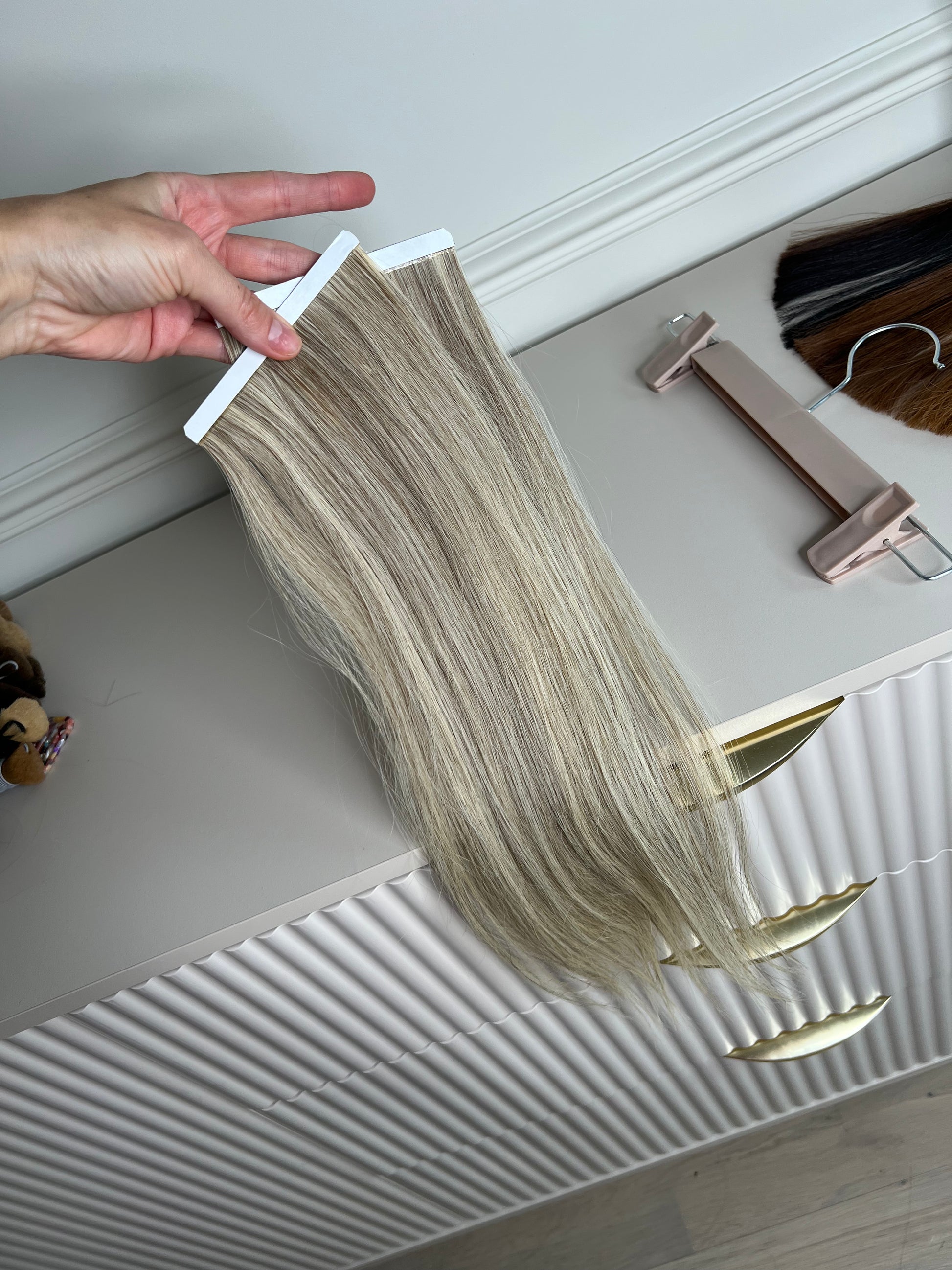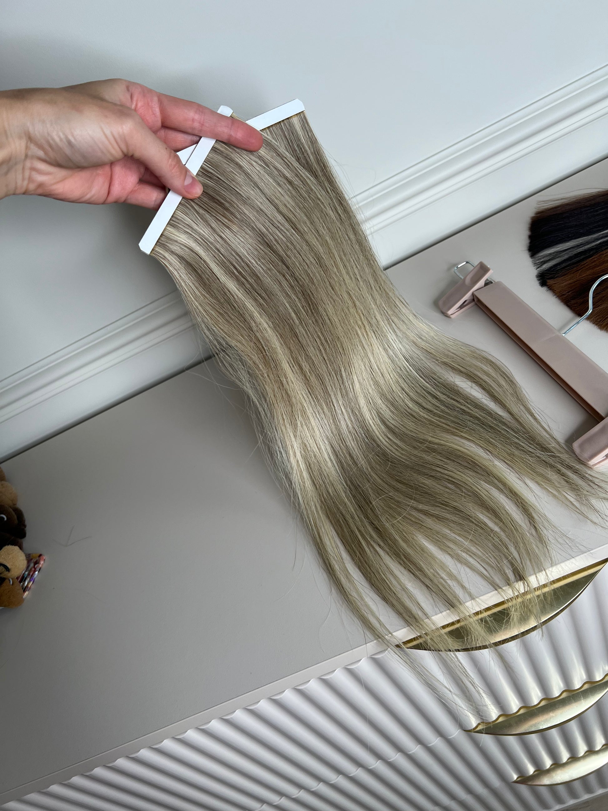 Pasemka blond włosy doczepiane na taśmie Biotaśmy 42g 46cm boczne 2 szt.